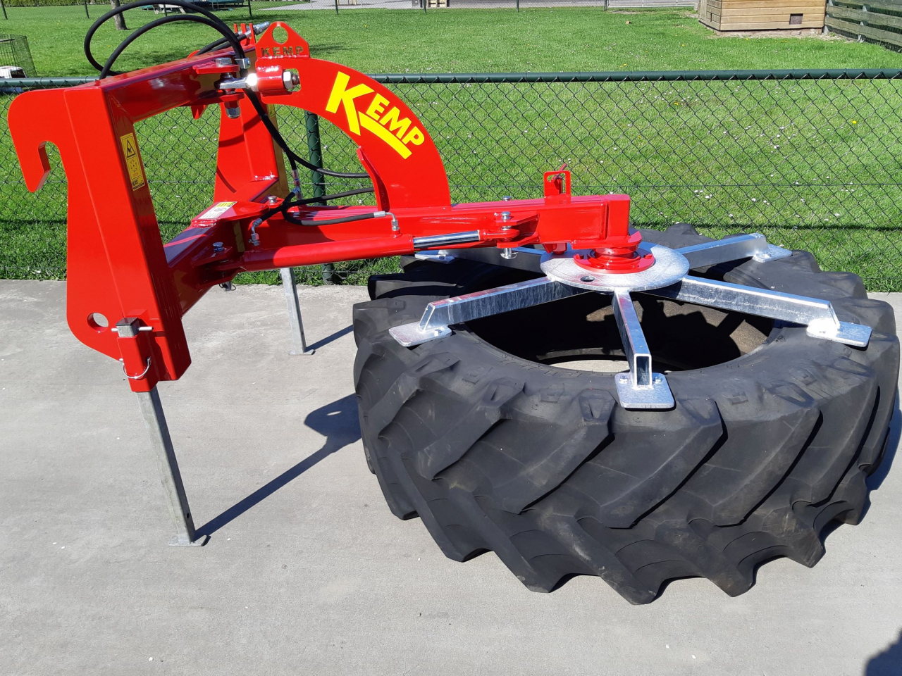 Der VBE (einzelner Kehrreifen) ist ein hydraulisch schwenkbarer Kehrreifen. Der Reifen kann sowohl links als auch rechts eingesetzt werden durch ein doppeltwirkendes Ventil. Hierdurch können Sie in Fahrtrichtung an beiden Seiten das Futter auf dem Futtertisch anschieben. Der VBE kann geliefert werden mit 3-Punkt oder Anbauteile für Hoftruck, Radlader und ähnliches (für Anbauteile siehe Dokument Kemp Anbauteile).