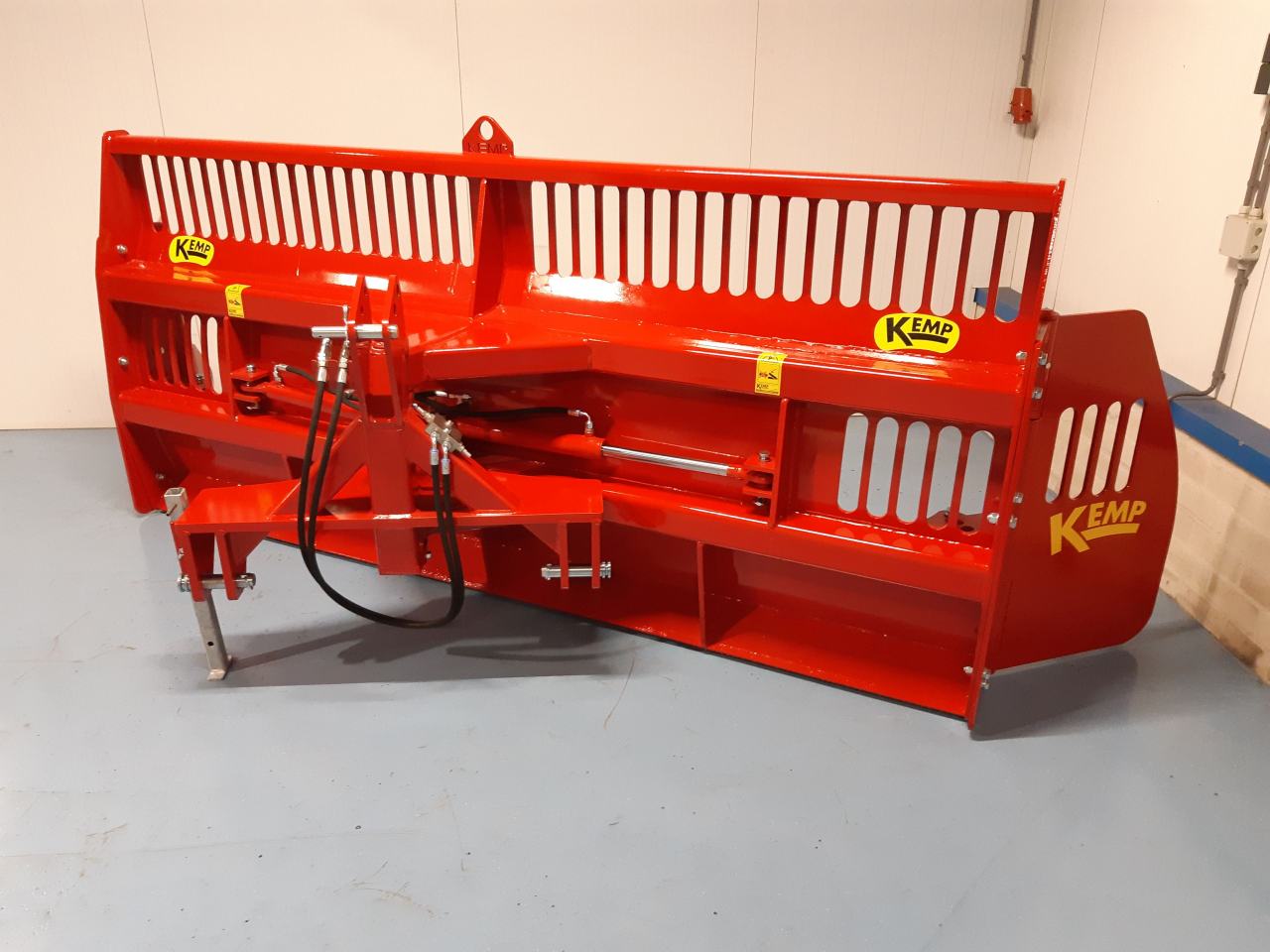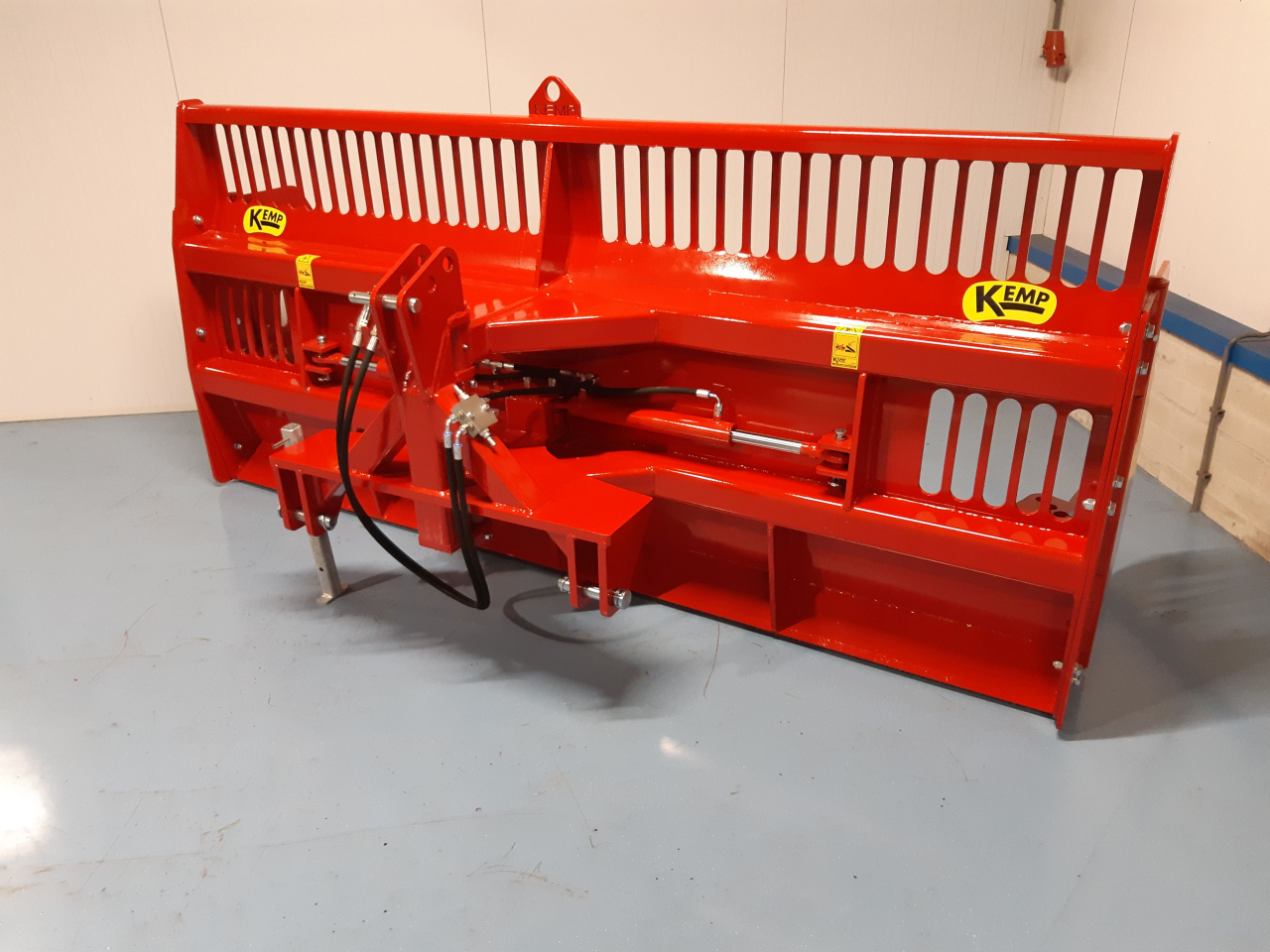 Die schwenkbare Ausführung kann zu jeder Seite 30 Grad schwenken. Da der Drehpunkt kurz am Dreipunkt gebaut ist, geht der Schieber beim Schwenken von der Mauer weg, wodurch man sich selbst nicht schnell festfährt an der Fahrsilowand. Zugleich ist es hierdurch einfacher den Mais zu den Außenkanten zu schieben ohne selbst nah an der Kante zu fahren. Das Gewicht von der schwenkbaren Ausführung beträgt ± 775 KG.