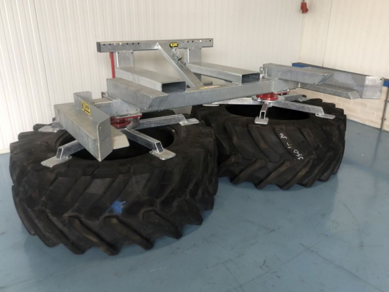 Bei der verstellbaren Variante sind die Radnaben nicht am Rahmen verschweißt, sondern mit Bolzen geklemmt. Hierdurch können Sie Radnaben, somit auch der Reifen, auf dem Rahmen versetzt werden. Dies ist notwendig, wenn breitere Reifen montiert werden. Die verstellbare Variante ist bis auf die Radnabe vollständig verzinkt. Hierdurch wird der Stahl nicht durch das Wetter oder Futter angegriffen.